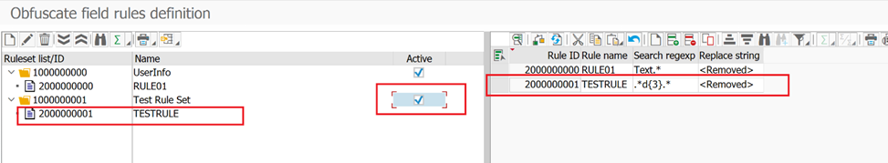 ‘Rule set ID’ column could be used to define regex expression to replace the field content or used to obfuscate the data. This functionality is explained below.