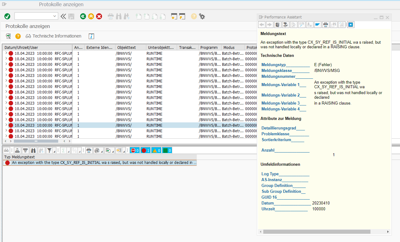 Application log in SLG1 contains following entries: