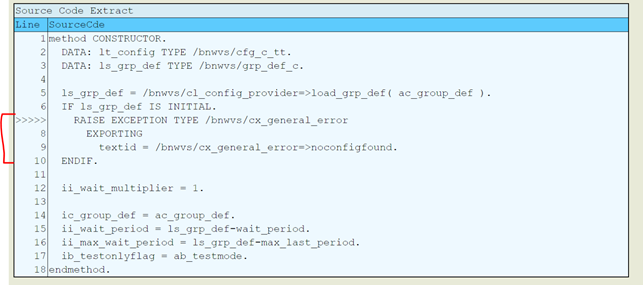 Any error in class /bnwvs/cl_config_provider=>load_def is caused by the framework being unable to find configuration in the Group Definition area