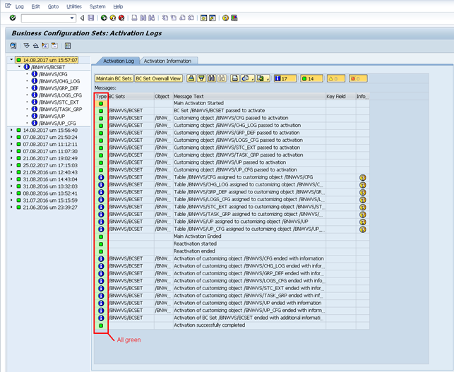 Ensure the BC SET is correctly activated with no errors
