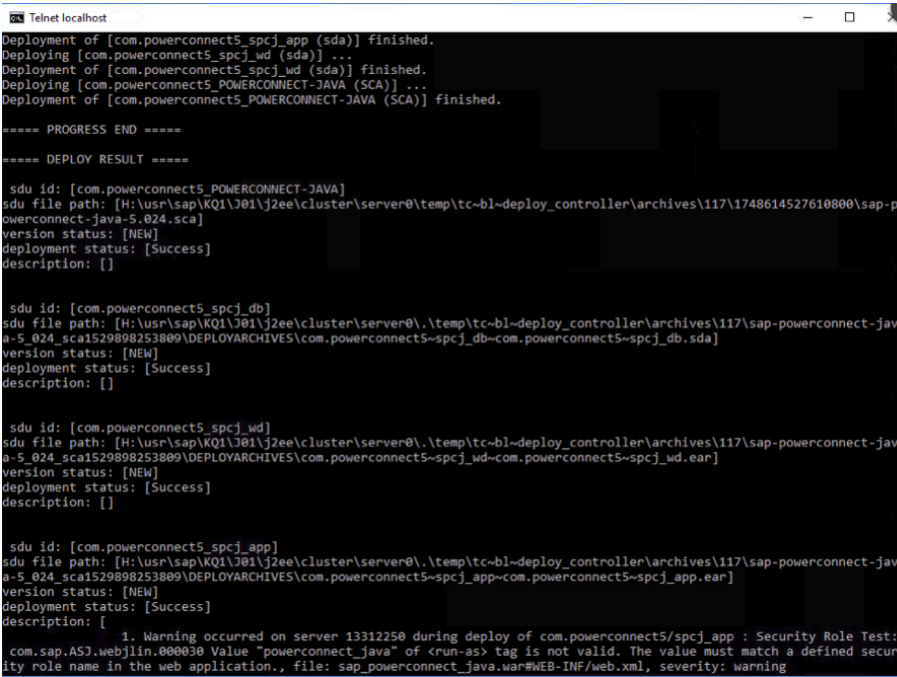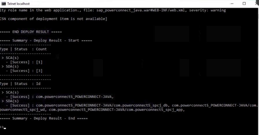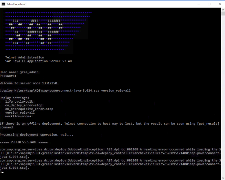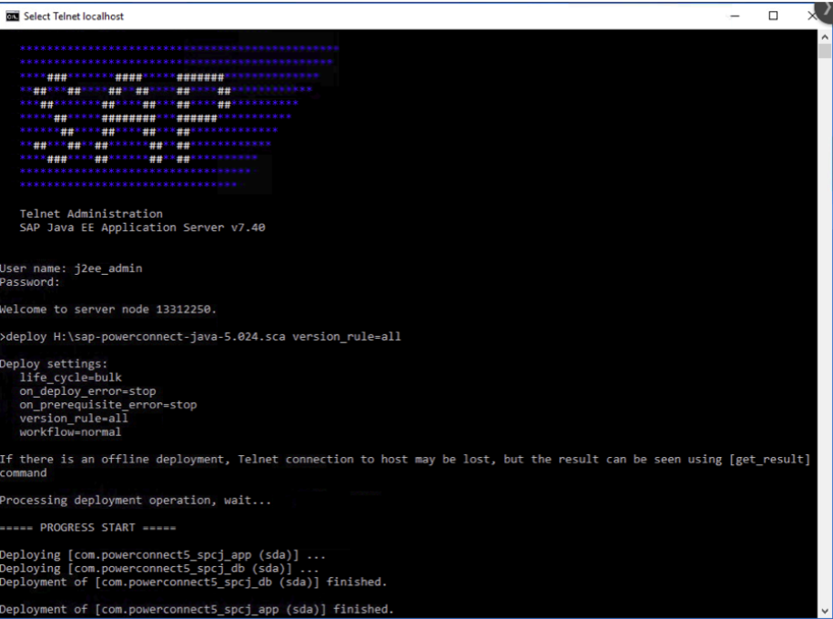 Download and upload the SCA file. Successful deployment of SCA files using telnet should look like this: