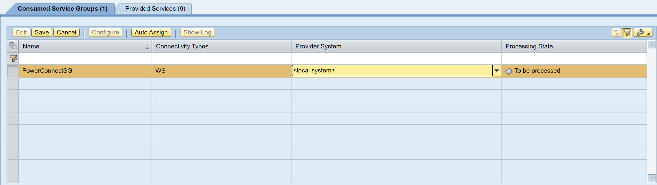 Then click Edit and choose provider system None, click Save, then choose provider system Local and click Save again this will force the service group to get refreshed and should fix the UI without needing a restart.