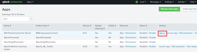 2. Click on “Set up” link in the Actions column to navigate to the configuration page.