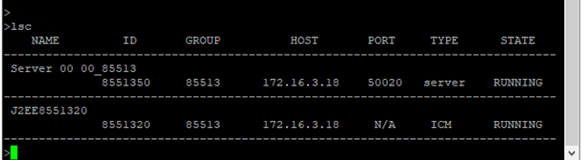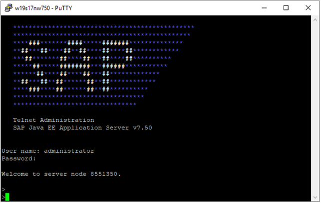 telnet <J2EE host> 5<XX>08 # XX is instance number