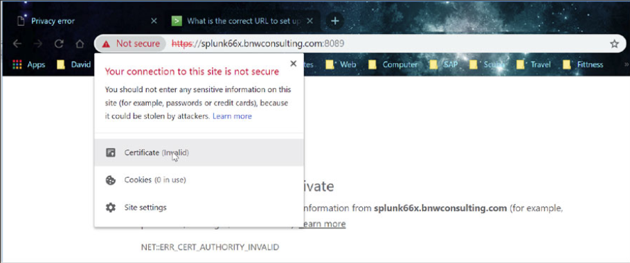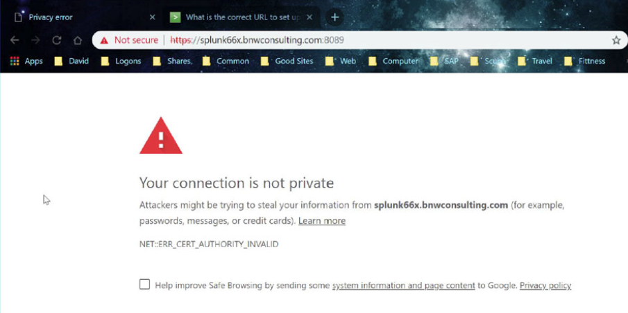 Use the following command to generate a Certificate request that will be signed by the RootCA you have created. The name uses must match the FQDN of your Splunk server. In the example below I am generating a request for Splunk66x.bnwconsulting.com.au