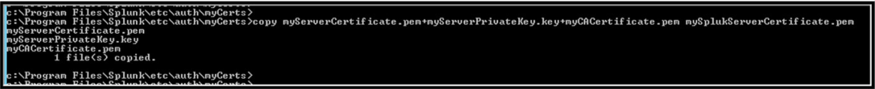 copy myServerCertificate.pem+myServerPrivateKey.key+myCACertificate.pem mySplukServerCertificate.pem