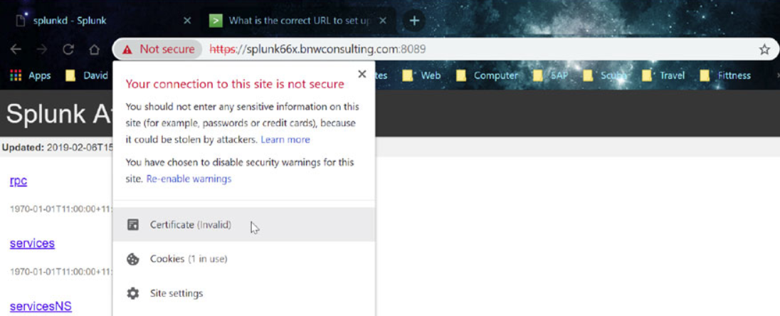 Connect to port 8089 of your Splunk server through a web browsers using the following format: