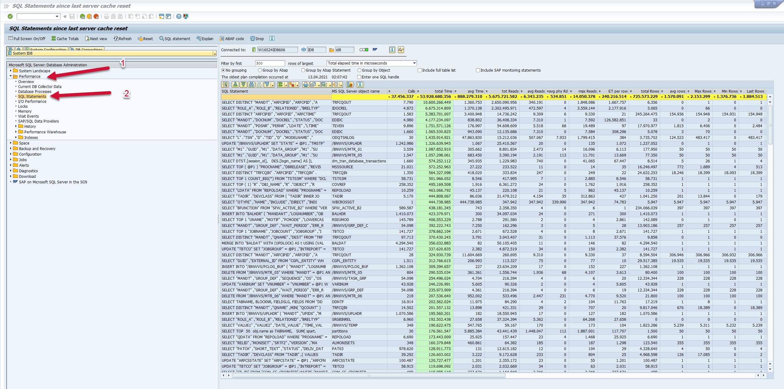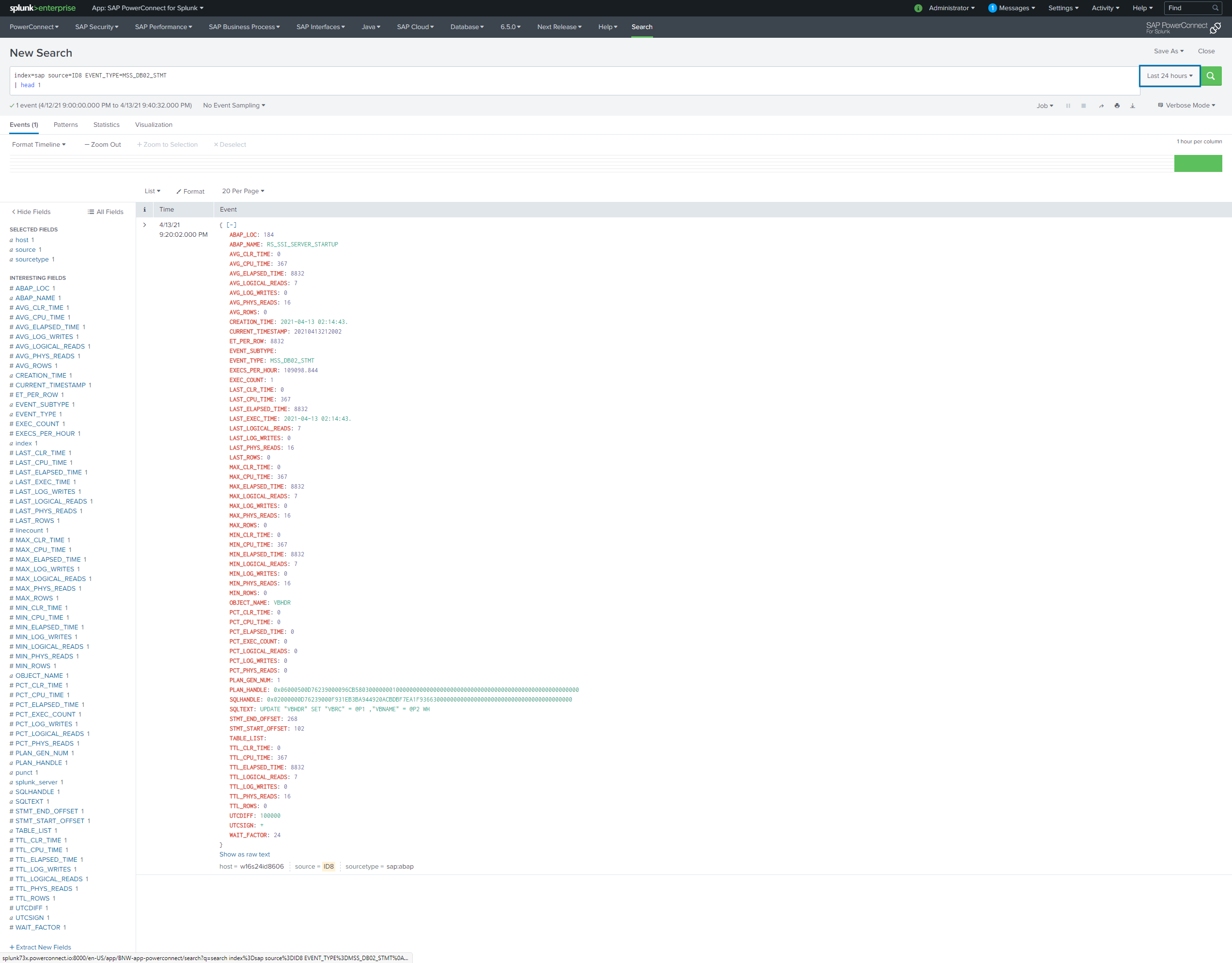 Log into the managed system and execute the dbacockpit transaction code. Then expand the Performance menu option, and double click the SQL Statements section. The data displayed on the page will match the data that is extracted and sent to Splunk.