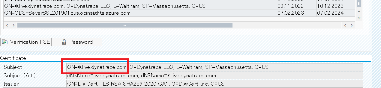 Note: The certificate shown below is if the customer has an Dynatrace SaaS environment. The same concept applies for Dynatrace OnPrem. The CN name should match the Dynatrace endpoint of where you are sending the SAP data.