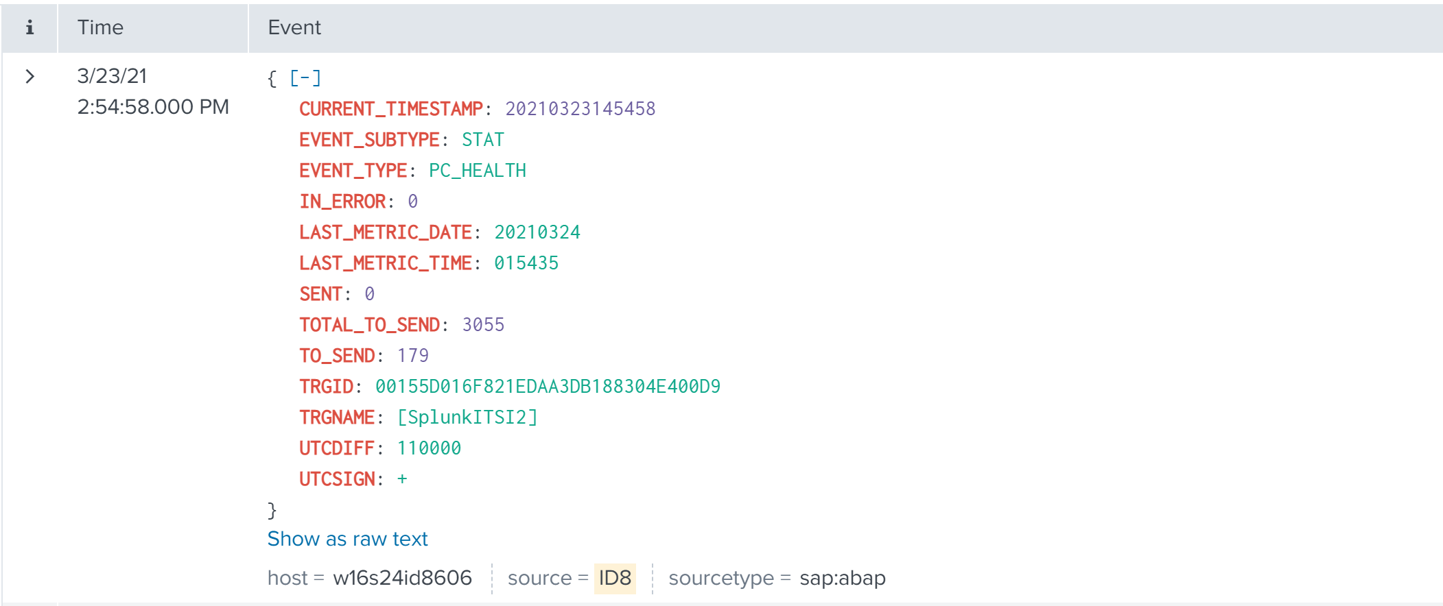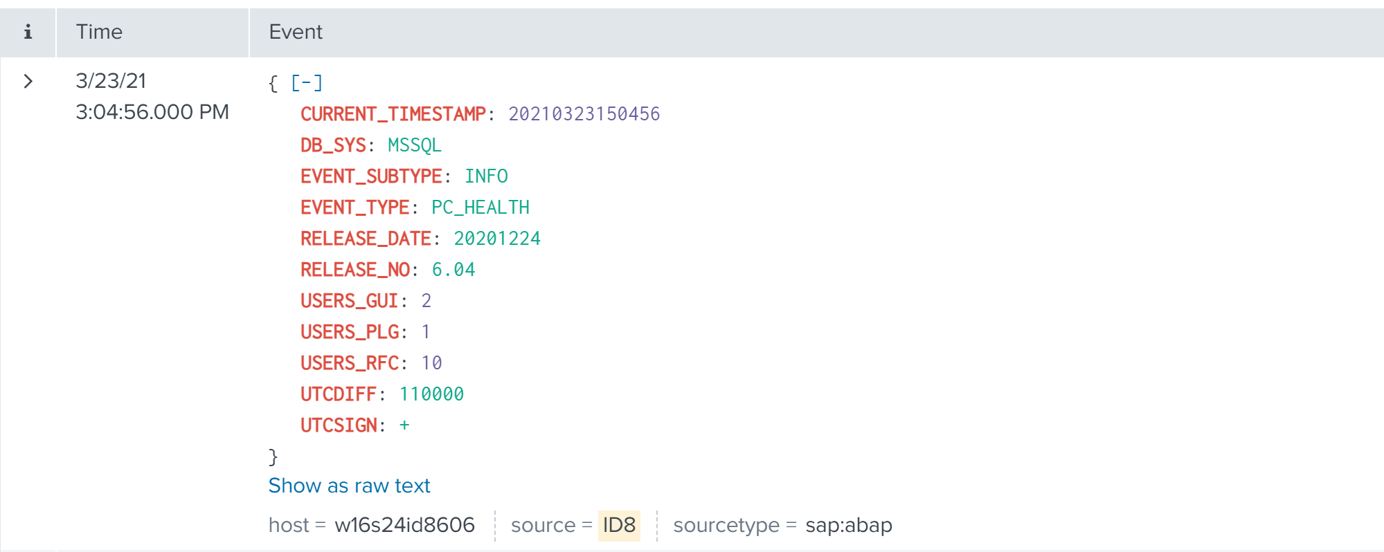 Events will look like this in Splunk: