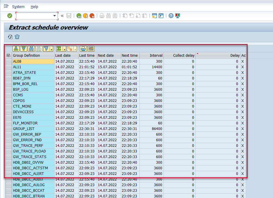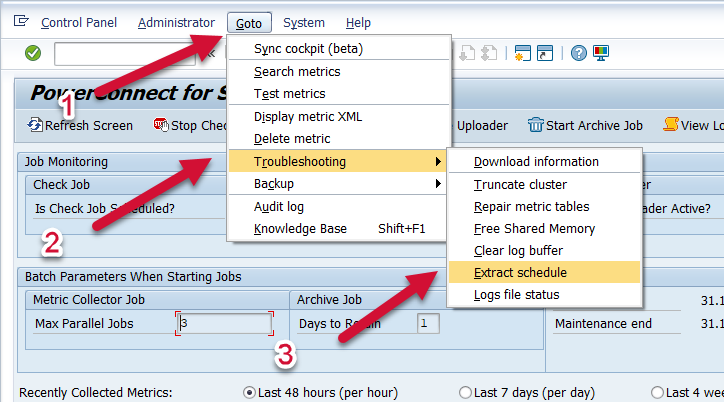 Execute the PowerConnect transaction, /n/bnwvs/main, in the SAP system. Then click on Goto → Troubleshooting → Extract schedule