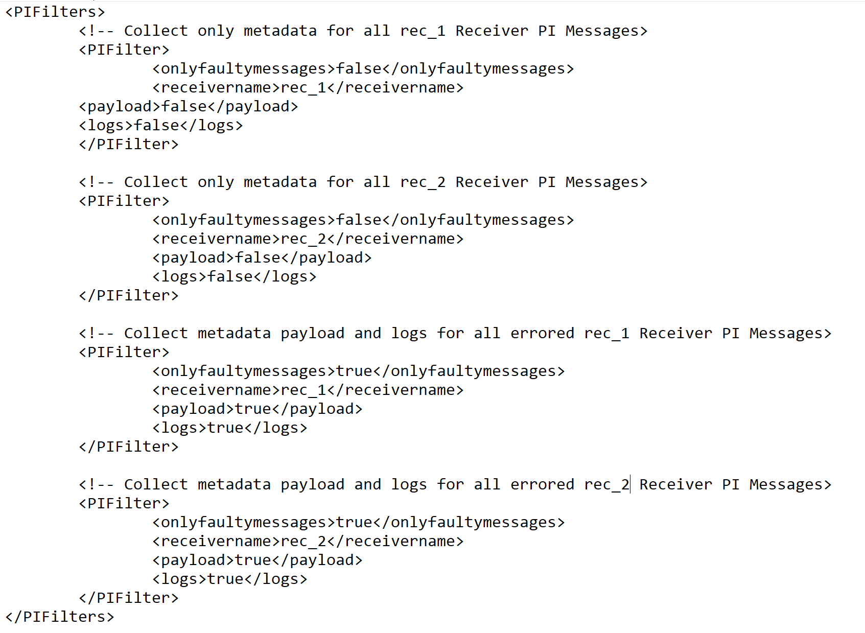 By default if the PI Monitoring Plugin is enabled it will use the Simple Filter configuration which will collect all messages including their logs and payload. The simple filter can be tuned further as detailed in the Simple Filters section below.
