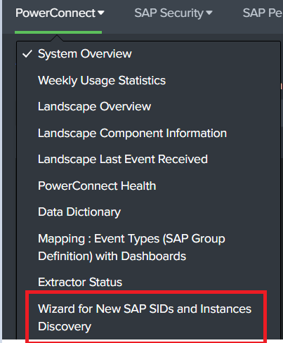 Open the dashboard "Wizard for New SAP SIDs and Instances Discovery" under PowerConnect menu.
