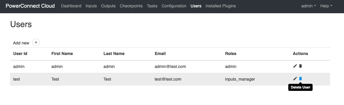 PowerConnect Cloud has a simple role based access control system for organisations that have different teams responsible for administering Inputs, Outputs and the PowerConnect Agent configuration.