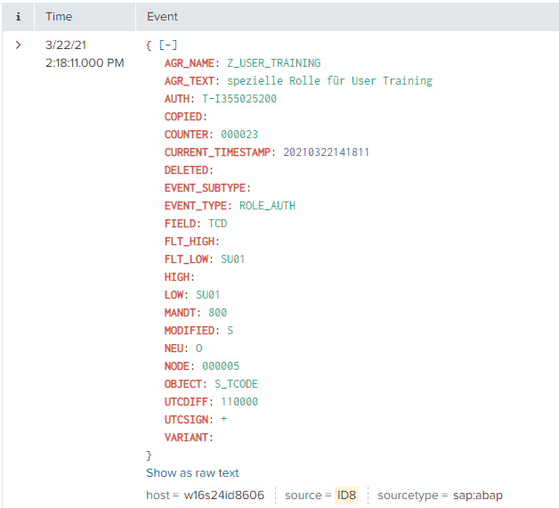 Field name - This is the field name associated with an authorization. For example, a t-code is noted as TCD in AGR_1251.