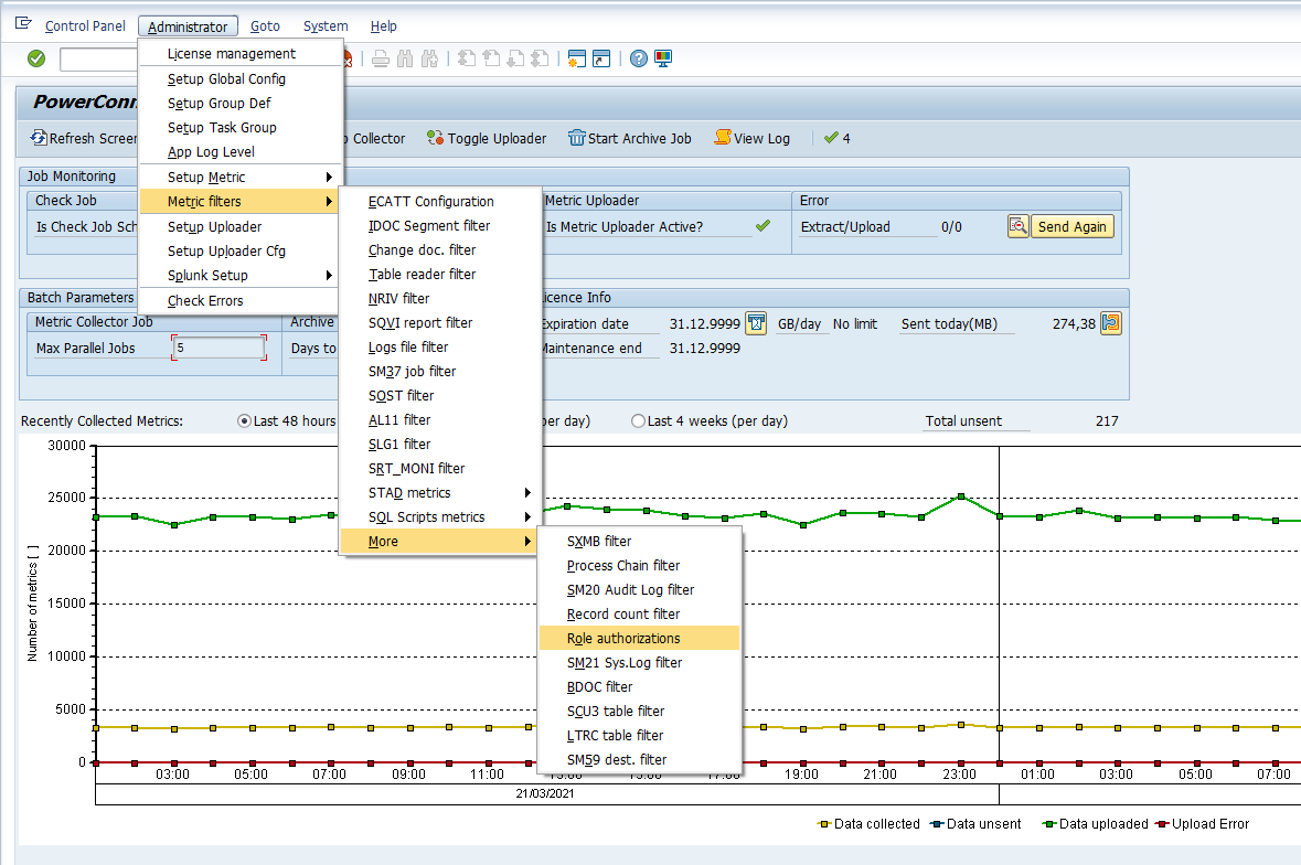 Then go to Administrator → Metric Filters → More → Role authorizations