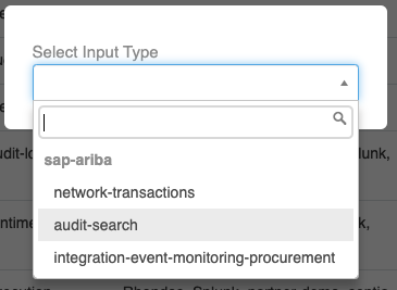Choose Ariba then choose the Input you wish to add e.g. audit-search