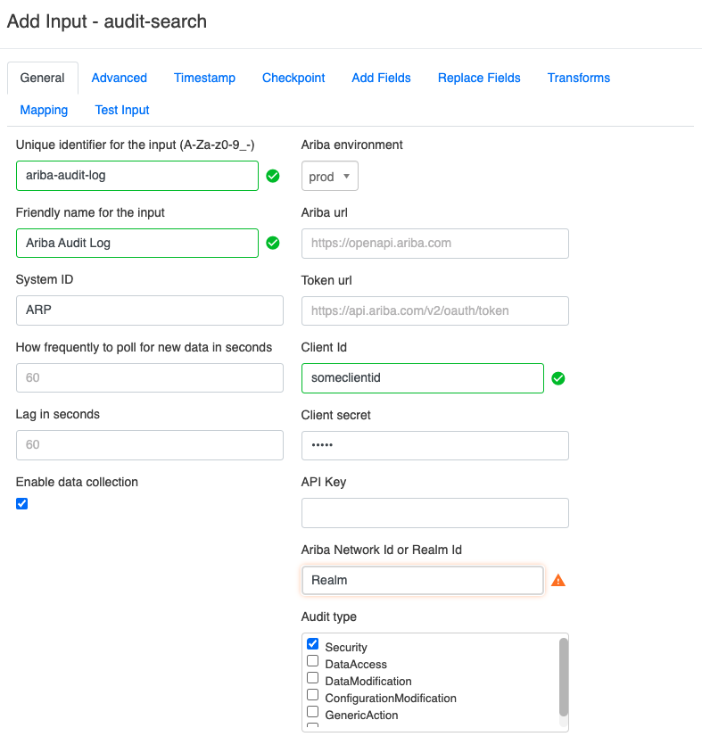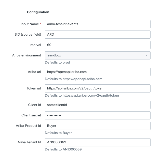 Adding an Ariba Input in PowerConnect Cloud (Splunk Modular Input)