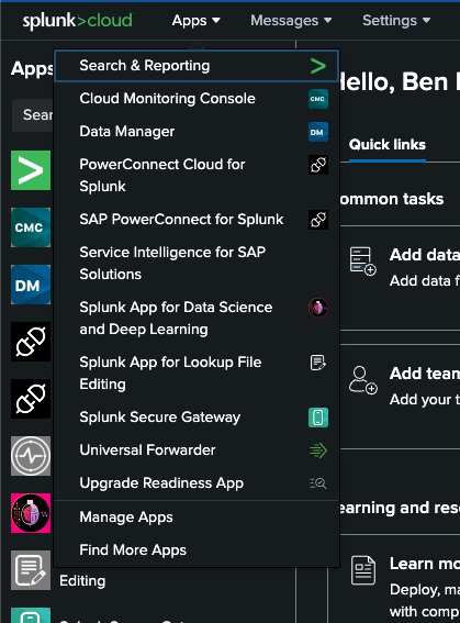Under the Apps menu click PowerConnect Cloud for Splunk