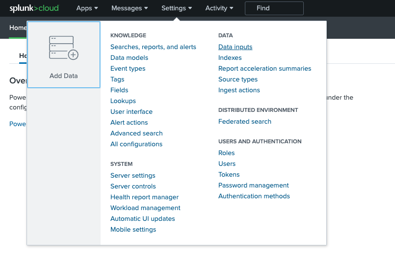 Under the Settings Menu click Data Inputs