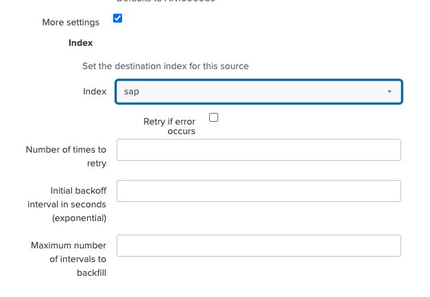 Click the More settings checkbox and choose the index where the data should be stored