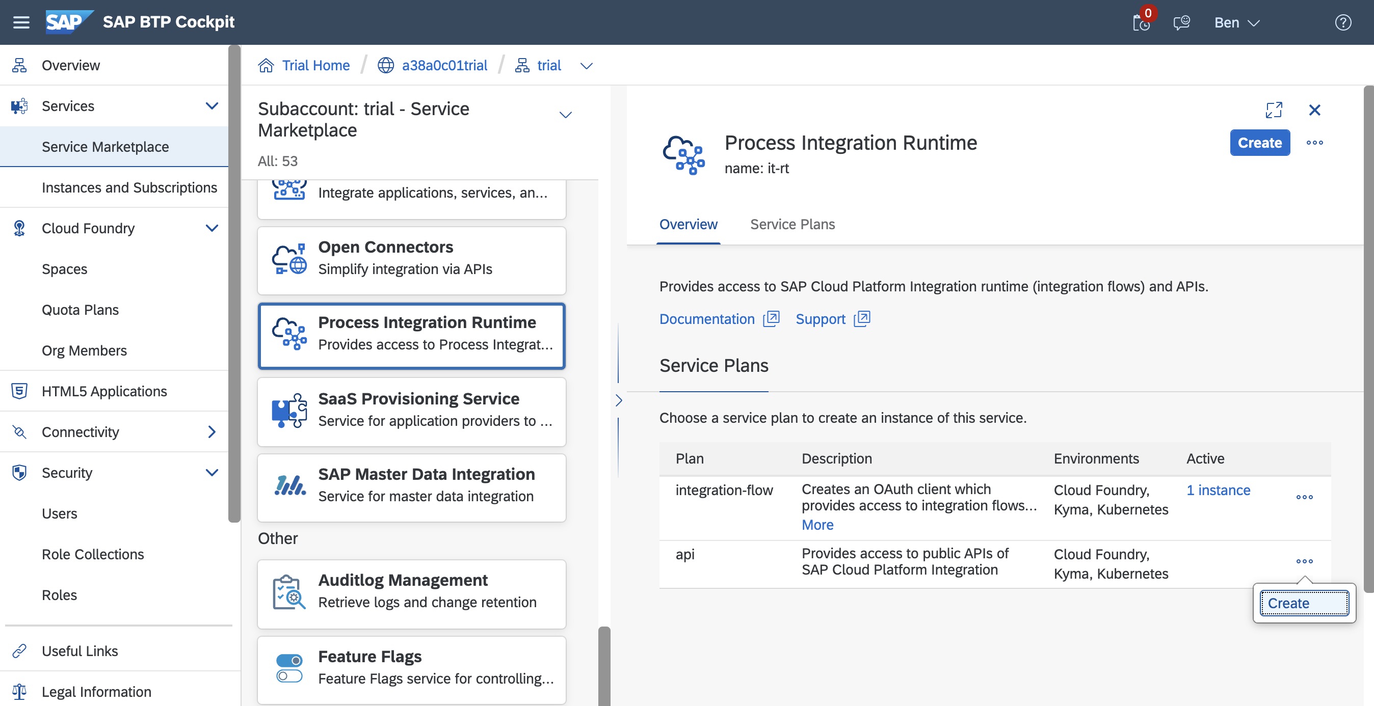 Click on the Service Marketplace and scroll down to Process Integration Runtime