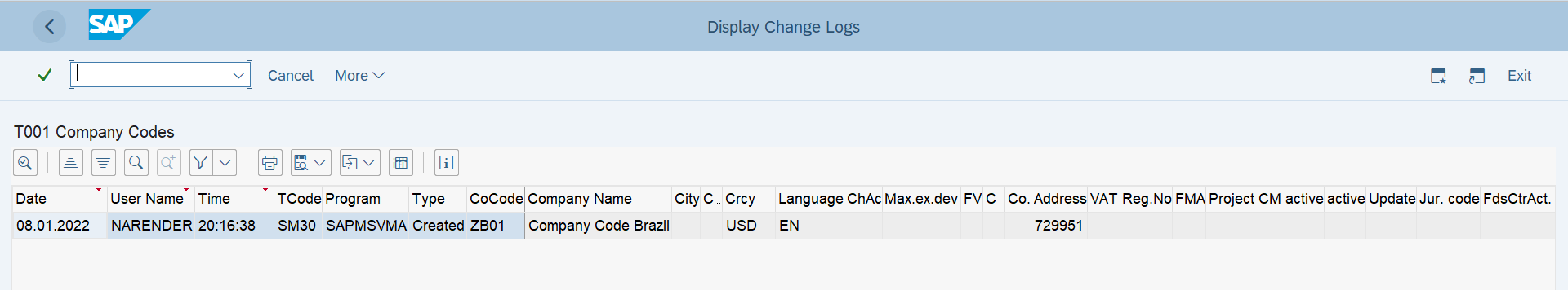 Log in to the SAP system and execute the transaction SCU3 and click on the ‘Evaluate Logs’ button.