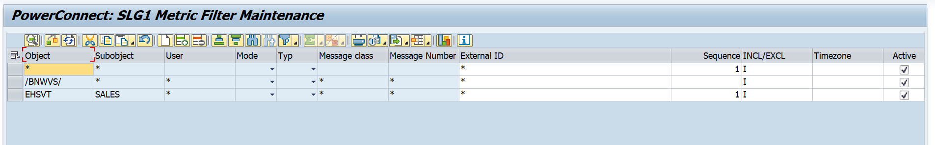 Object - This field represents the application log object name. If you would like to extract data from all objects, place a wildcard value in this field (not recommended based on potential data volume), or specify an object from the SLG1 transaction that you would like to extract.
