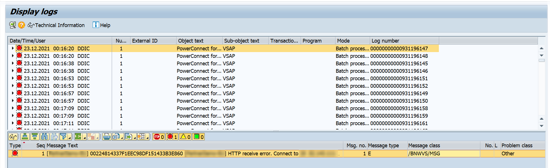 Typ - This field refers to the message type. The potential values are: A = Abend/Cancel, E = Error, W = Warning, I = Information, S = Success. Leave this field blank if you want to extract all message types, otherwise specify the desired value.