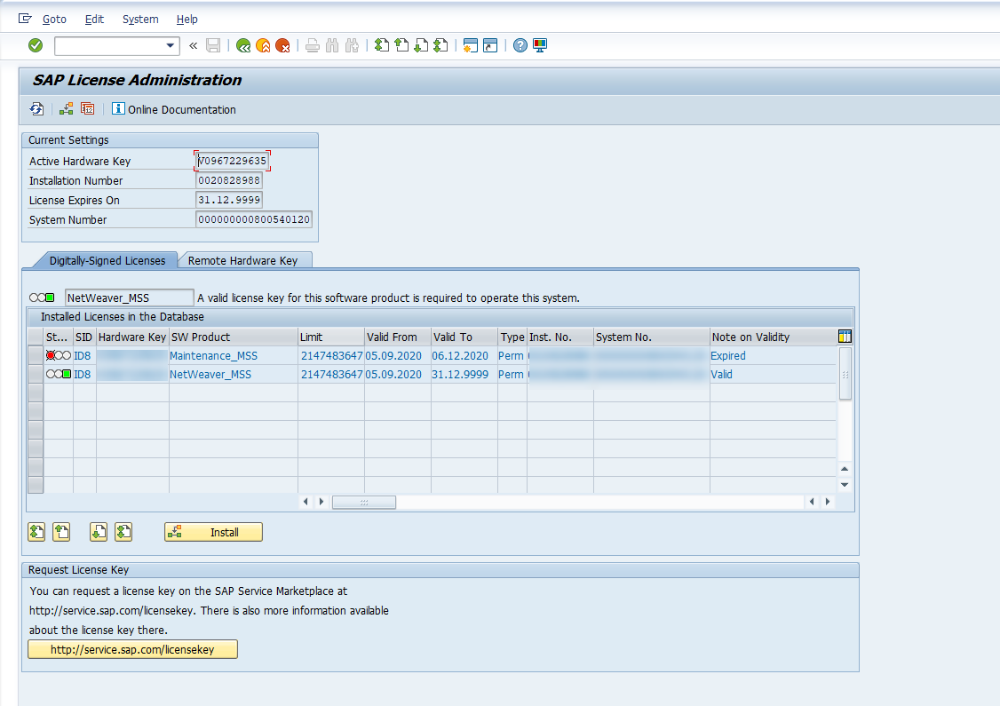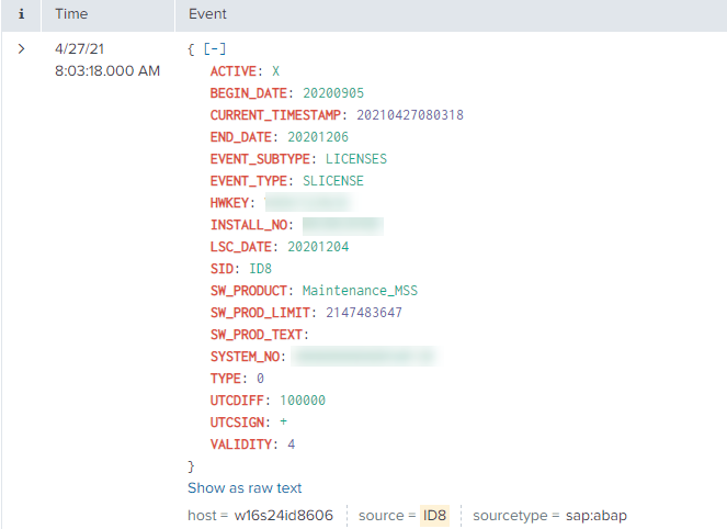 Log into the managed system and execute the SLICENSE transaction. The information displayed will match the data that is extracted and sent to Splunk.