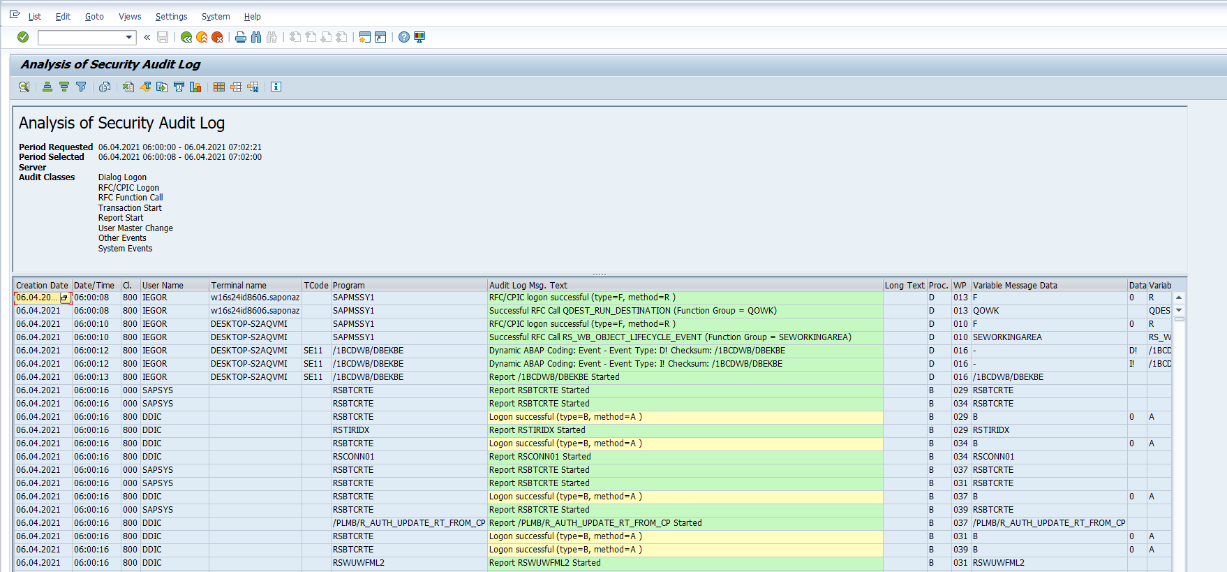 Transaction Code - This field is mandatory and is used to filter on a specific transaction code that is noted within the security audit log. To extract data from all transactions, enter a wildcard value (i.e. “*”).