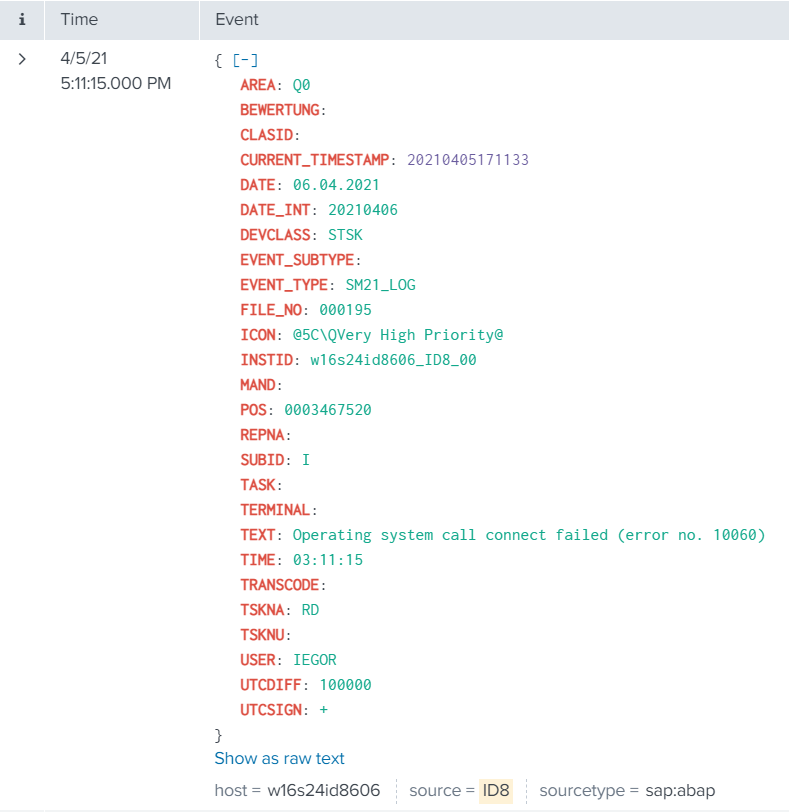 The event will look like this in Splunk: