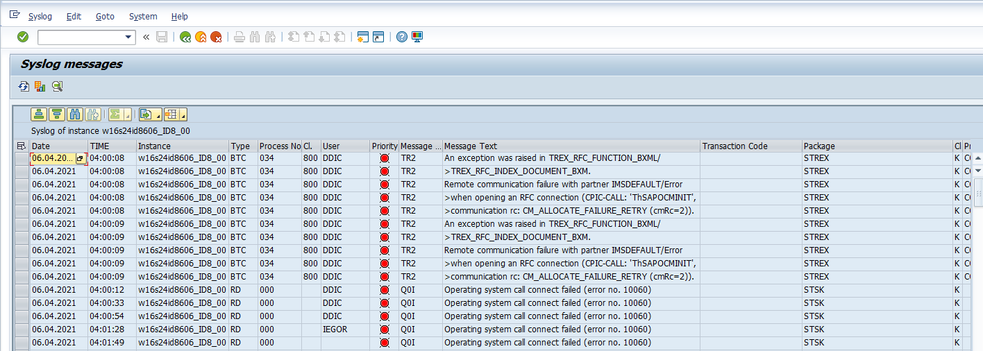 To access to the SM21 system log, log into the managed system and execute the SM21 transaction. You will then be brought to a user selection parameter screen. Fill out the user selection parameters as desired and select the Execute button.