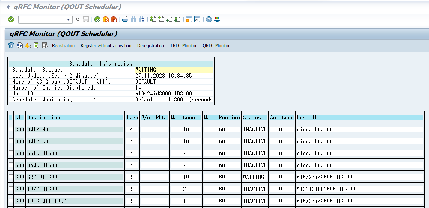 Log into the managed SAP system and execute the transaction SMQS to display outbound queue details.