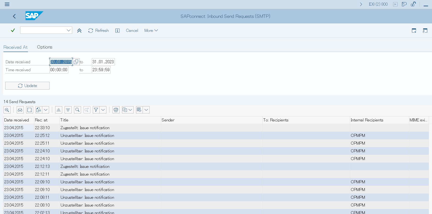 The SOIN event is used to get the send requests received using the SAPconnect Interface