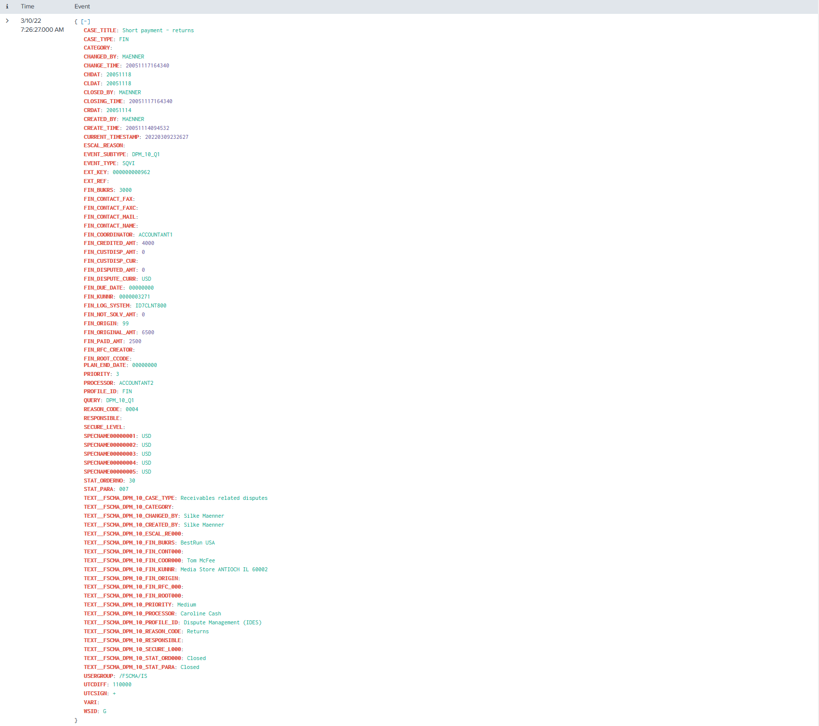 The event will look like this in Splunk: