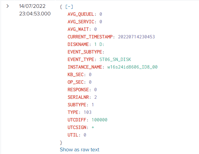 Execute the ST06 transaction and select the application server of interest. Double-click on Disk on the left side of the screen. The information on the right side of the screen will match the data that is extracted and sent to Splunk.