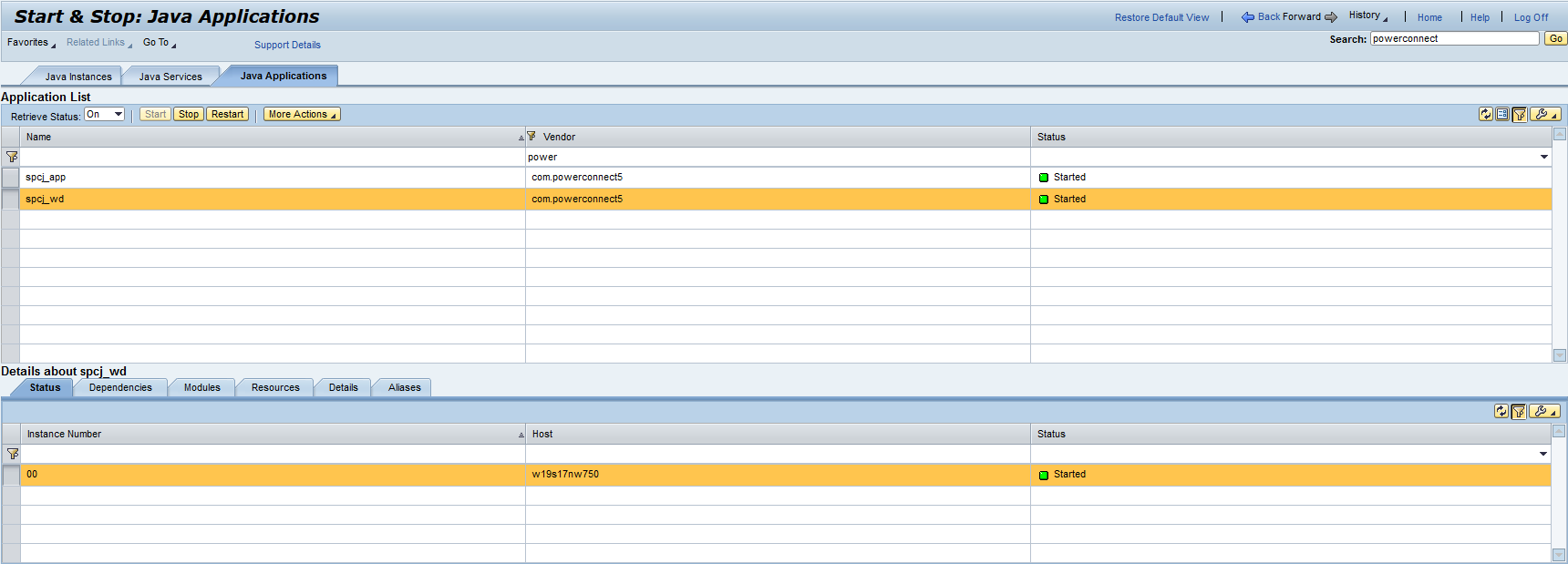 To get the status of a PowerConnect application