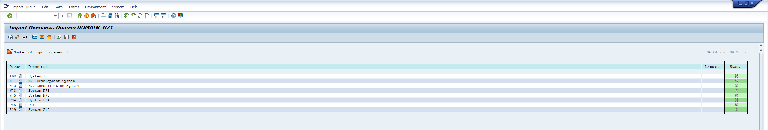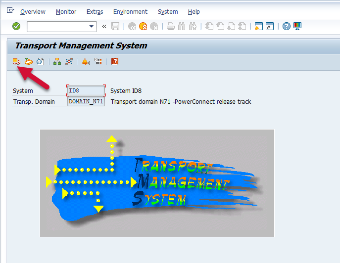 Log into the managed system, and execute the STMS transaction code. Then select the Import Overview icon.