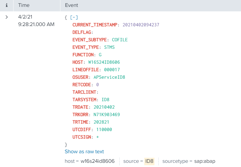 The event will look like this in Splunk: