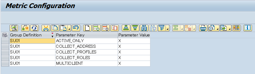 In the row with SU01 in the Group Definition field below are the parameters to be set as X.
