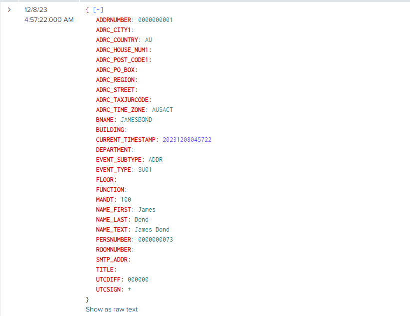 The event will look like this in Splunk: