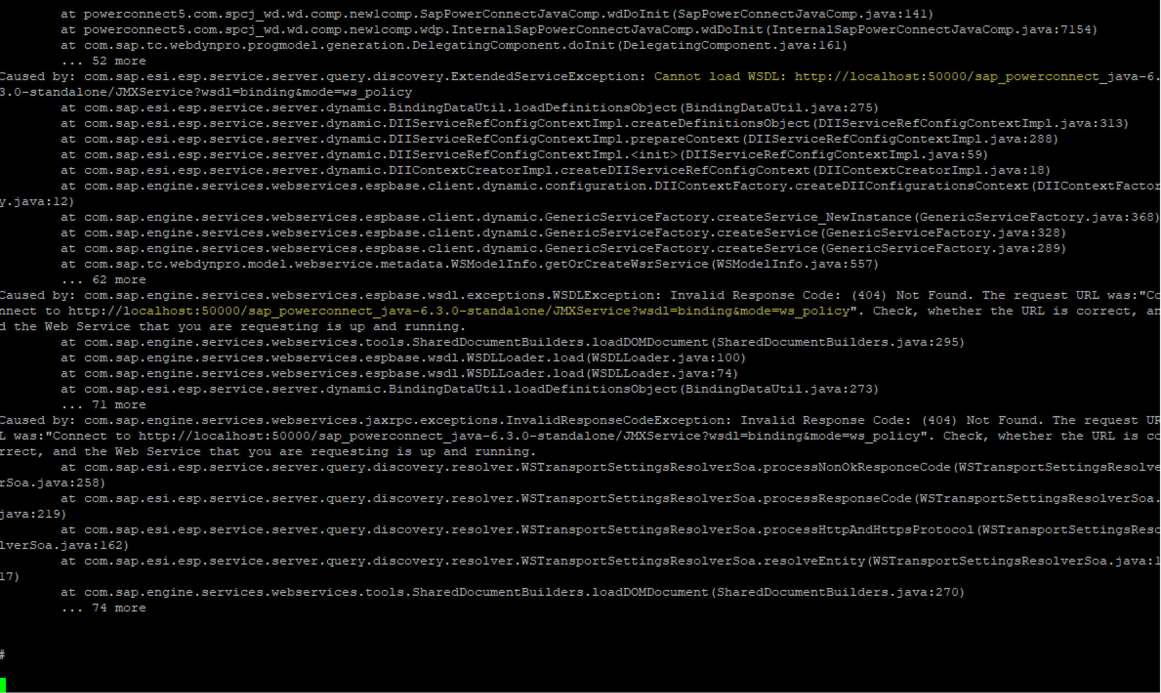 After upgrade PowerConnect UI shows “500 Internal Server Error” In the logs you see the text ![]() | Issue is caused by caching of the ws policy in NetWeaver java engine. The ws cache needs to be flushed using this KB article below. This issue only occurs when using SUM to update the application, using telnet to deploy the application this issue does not occur. https://www.powerconnect.io/wiki/kb-079-ui-ws_policy-error-after-upgrade/ |