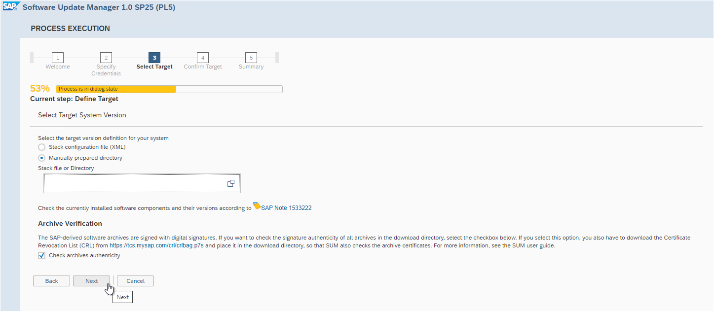 Provide the directory of the installation file, ensure the “Manually prepared directory” option is selected, and click “Next”