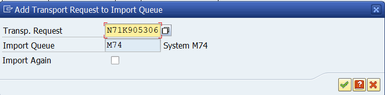Select transport “N71K905306” (the transport is release dependent and might has different number in actual release. Please use the one shared with installation packages).