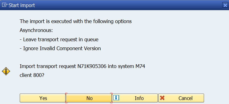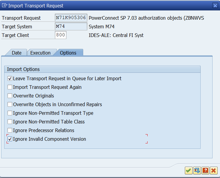Other selections ( Apart from Ignore Invalid Component Version ) in the screenshot above are just for reference, please contact your Basis team for clear instructions